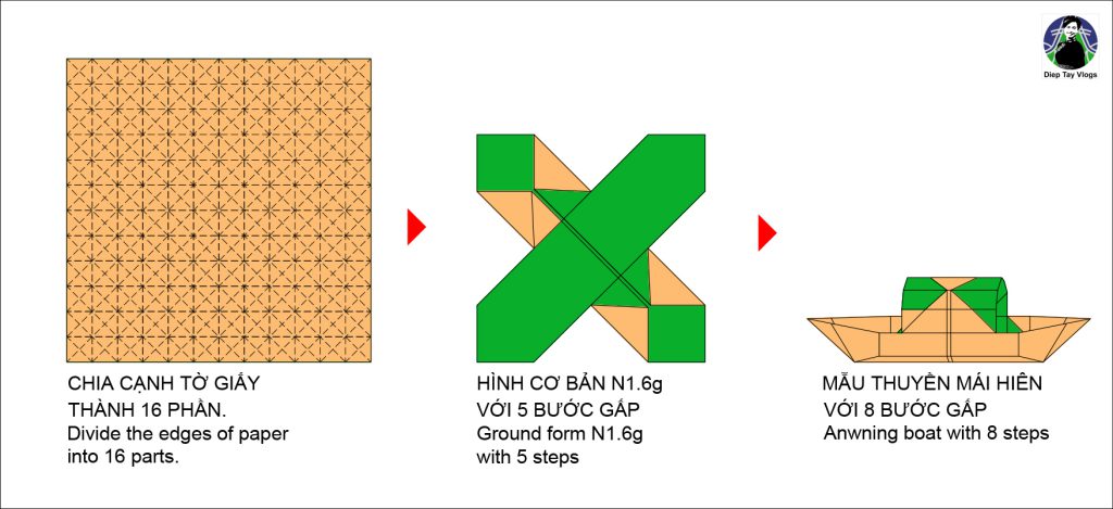 66 - Mẫu gấp Thuyền mái hiên - Paper Folding Art: Awning Boat