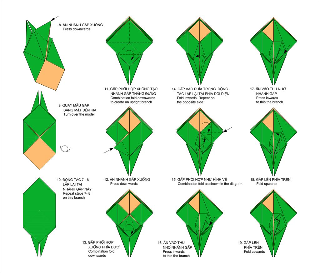 Mẫu gấp không quá phức tạp với 38 bước gấp (không kể Hình cơ bản).