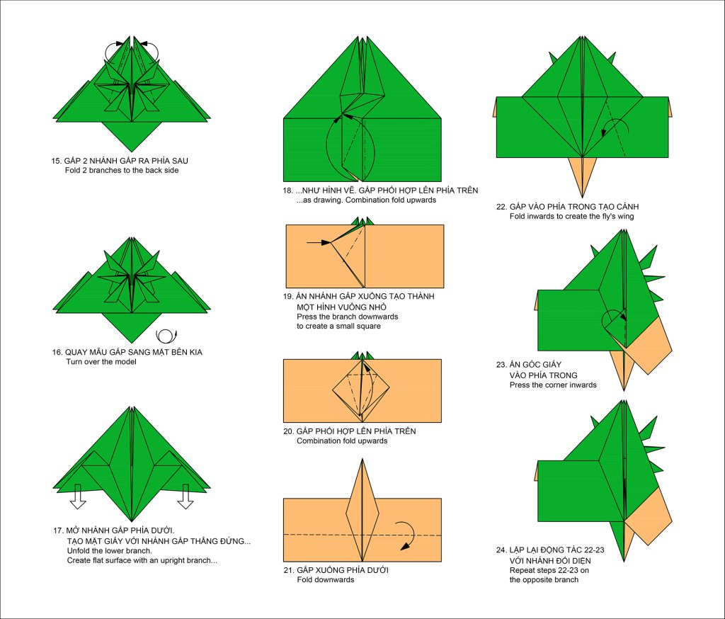 Điểm đặc sắc của Mẫu gấp là cách tạo ra nhánh gấp cho 6 chân và 2 cánh mỏng.