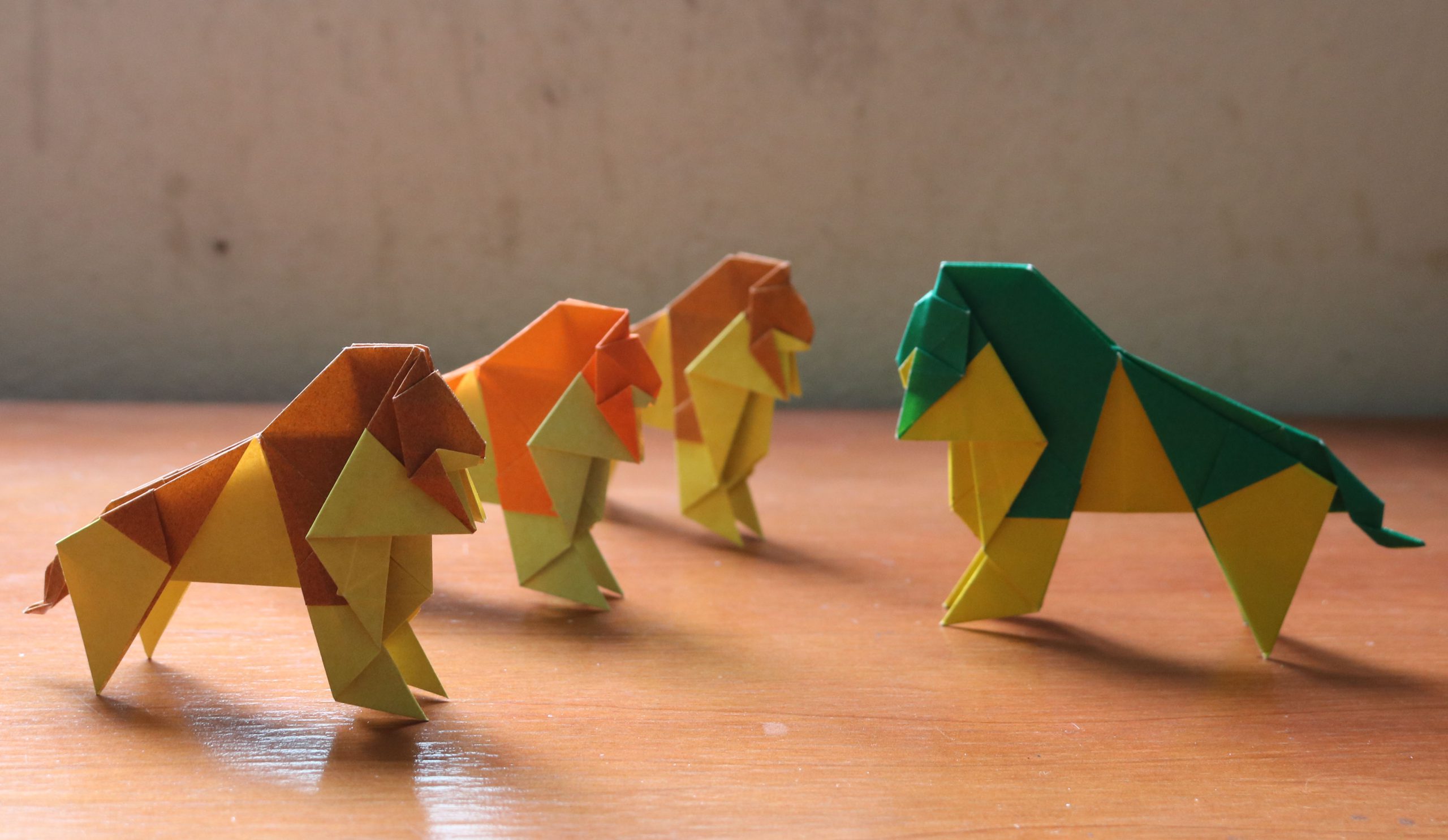 Có nhiều Mẫu gấp Con sư tử. Nghệ nhân Gấp giấy nào cũng có Mẫu Con sư tử của riêng mình.