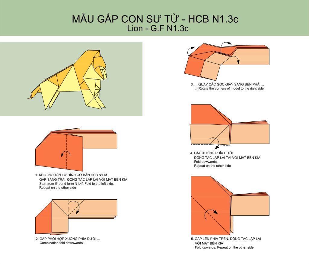 17 - Mẫu gấp Con sư tử - Paper Folding Art: Lion