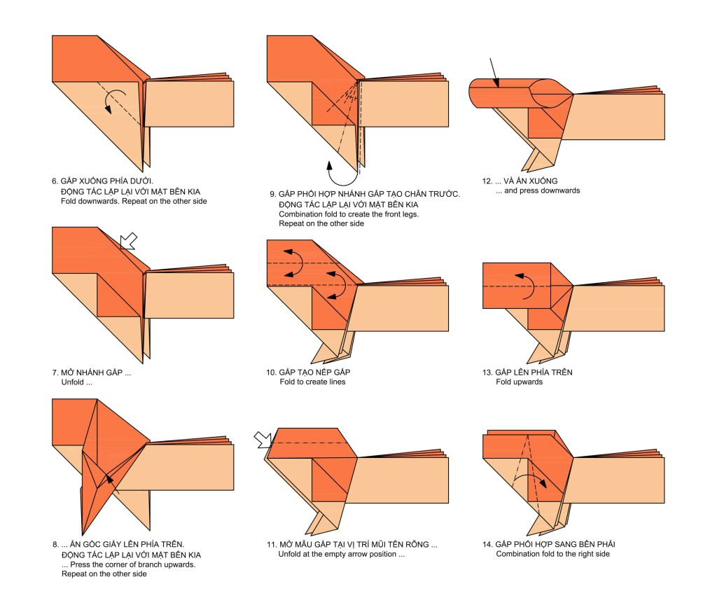 Điểm khó nhất là gấp tạo đầu Mẫu gấp Con sư tử. Cần phải kiên trì trong quá trình gấp.