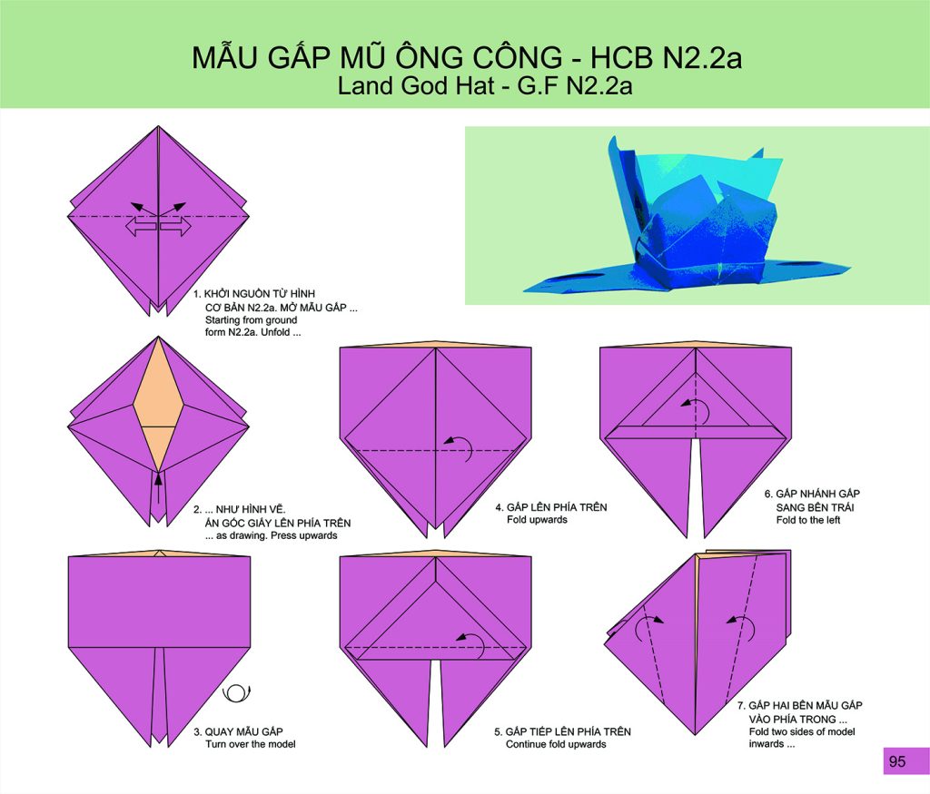 2 – Mẫu gấp Mũ Ông Công – Paper Folding Art: Land God Hat