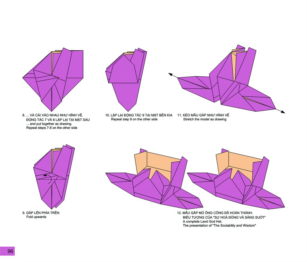 Mẫu gấp Mũ Ông Công rất đơn giản với 12 bước gấp (không kể Hình cơ bản).