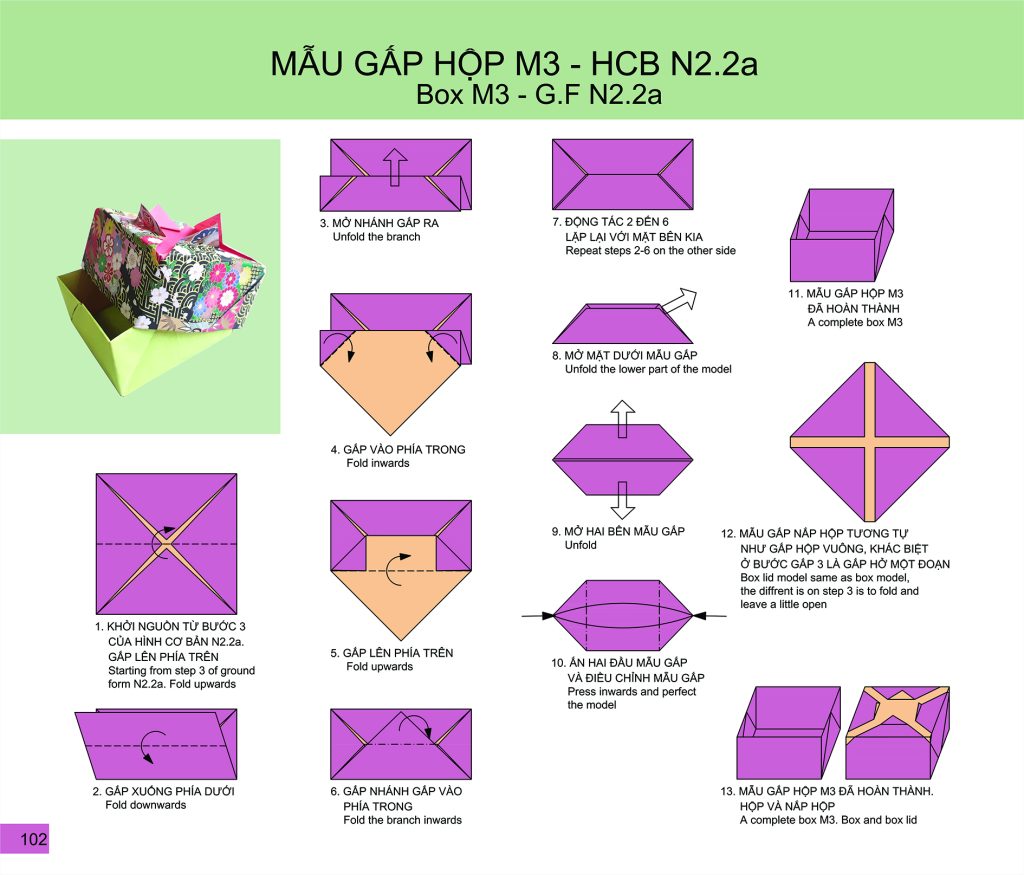 22 – Mẫu gấp Hộp vuông M3 – Paper Folding Art: Box M3