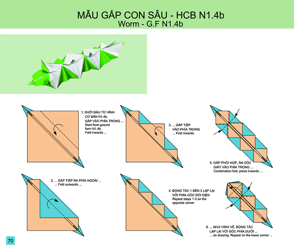Xem video giới thiệu cách gấp Mẫu Con sâu tằm tại đây