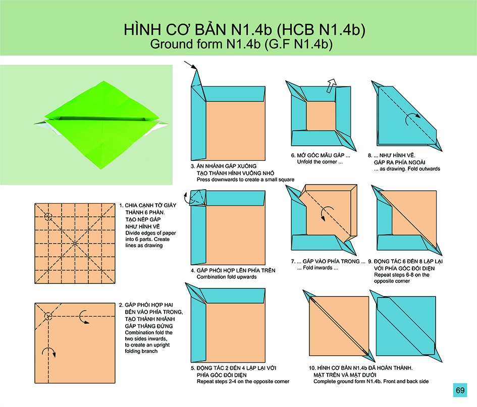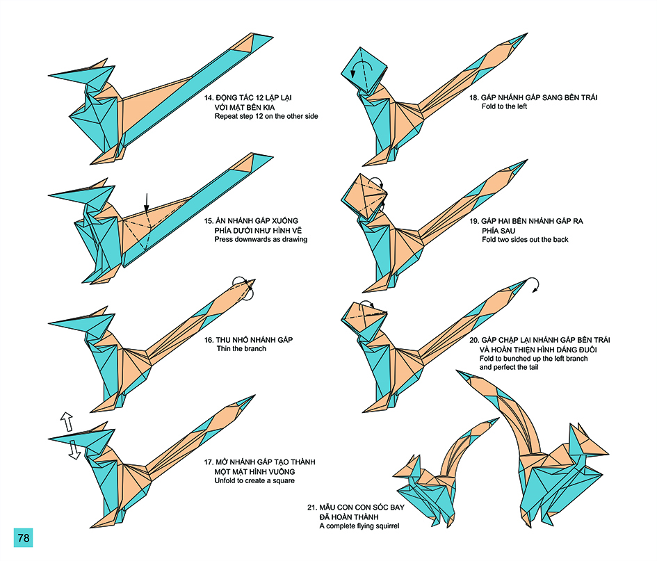 Mẫu gấp Con sóc bay dưới đây khá đơn giản với 21 bước (không kể Hình cơ bản).