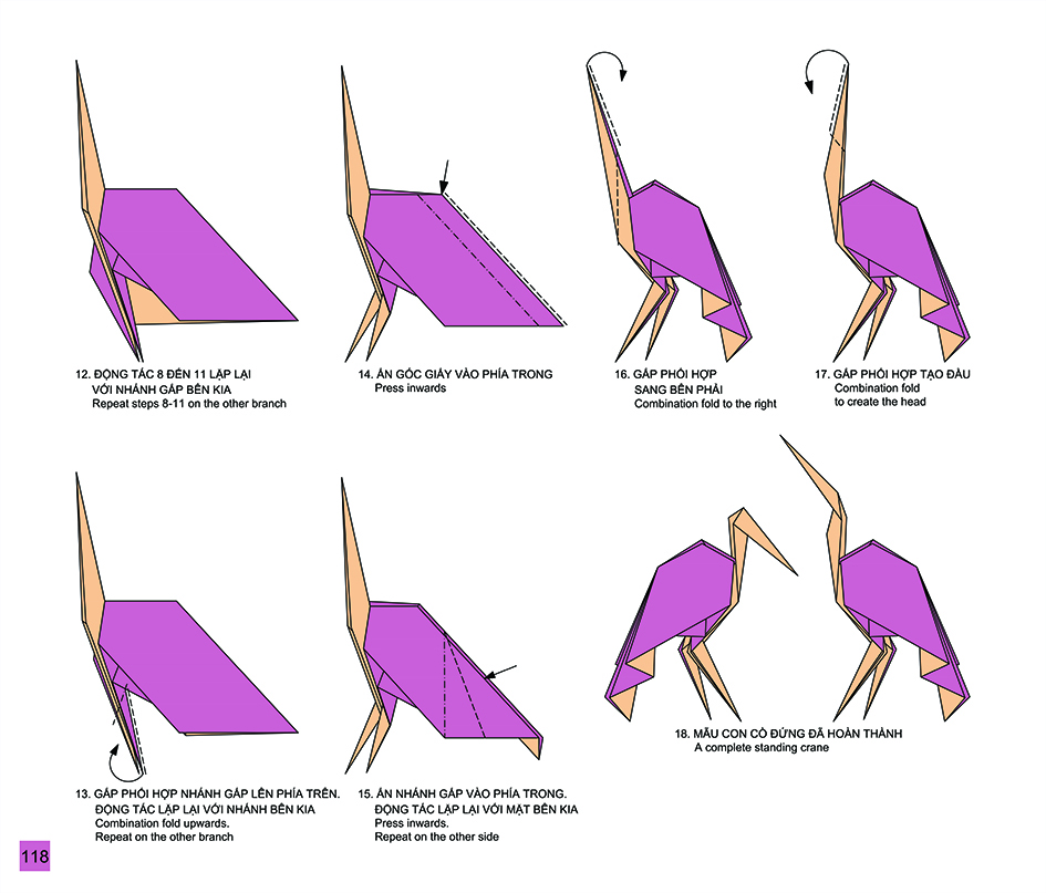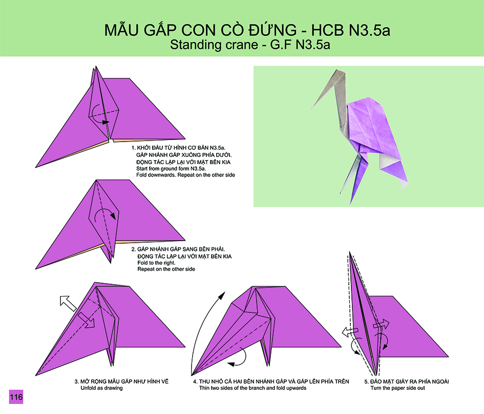 44 – Mẫu gấp Con cò đứng – Paper Folding Art: Standing crane