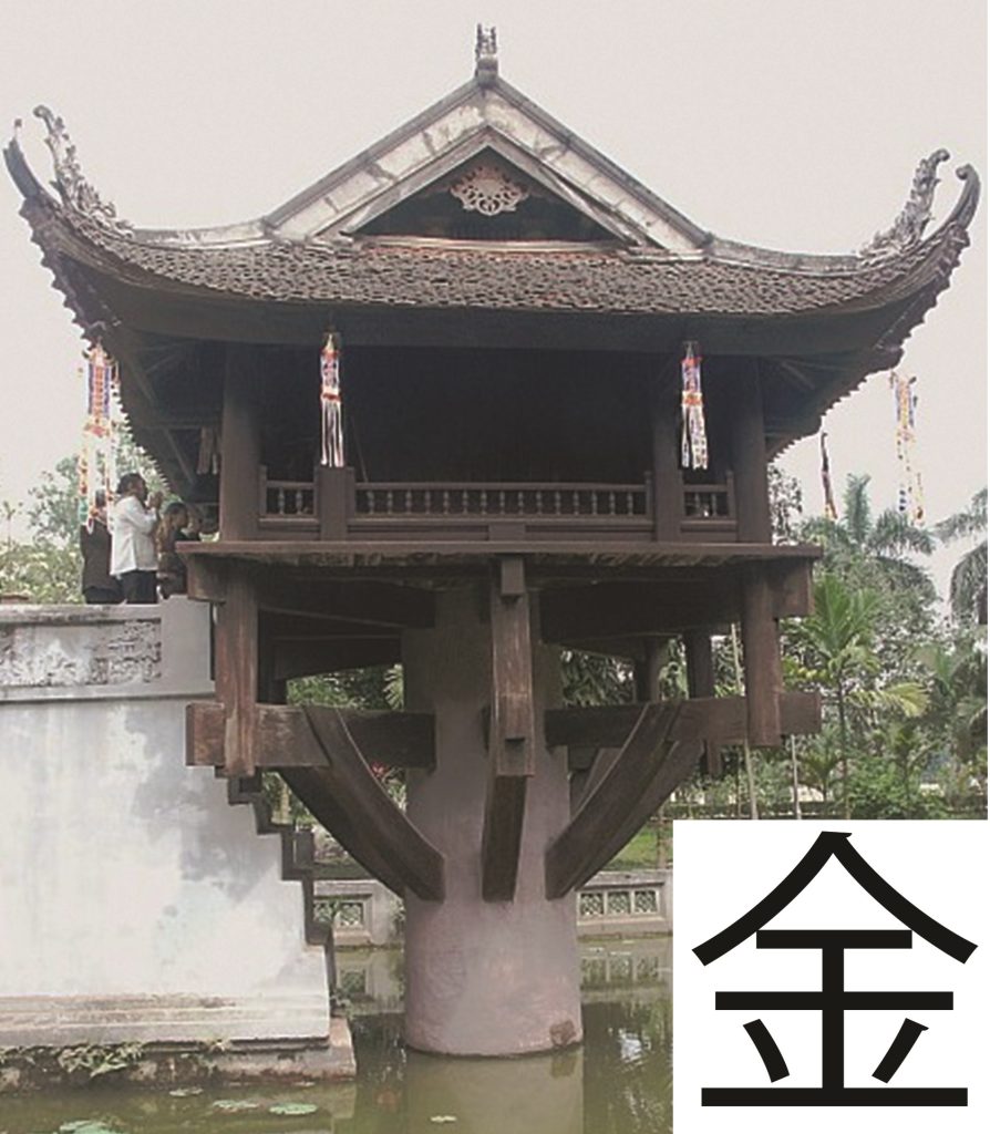 Chùa Một Cột được hình thành theo biểu tượng về một báu vật – vàng, như ký tự chữ Kim (金)