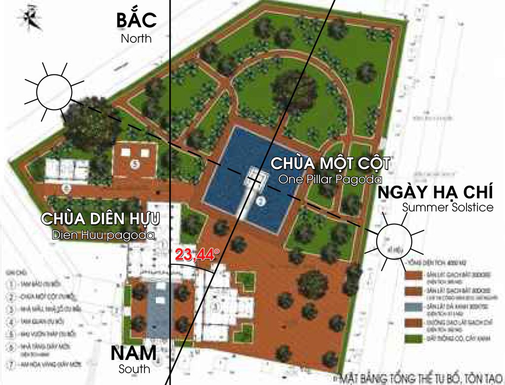 Chùa Một Cột như một một đài thiên văn với trục chính lệnh theo hướng Bắc – Nam một khoảng 23,44 độ