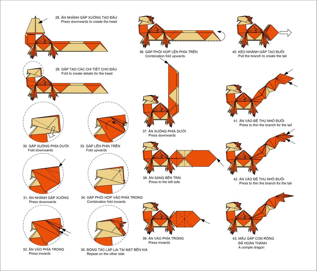Mẫu gấp Con rồng không quá phức tạp với 43 bước (không kể Hình cơ bản).