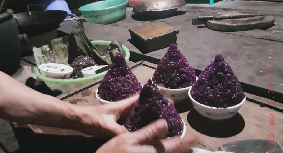 i) Xôi ngũ sắc: Một món ăn mang tính biểu tượng cao, gồm 5 màu sắc tượng trưng cho âm dương ngũ hành và tình đoàn kết. Gạo nếp được nhuộm màu bằng các loại lá, củ tự nhiên như lá cẩm (đỏ, tím), nghệ (vàng), gấc (cam), lá sau sau (đen), sau đó đồ chín thành xôi.