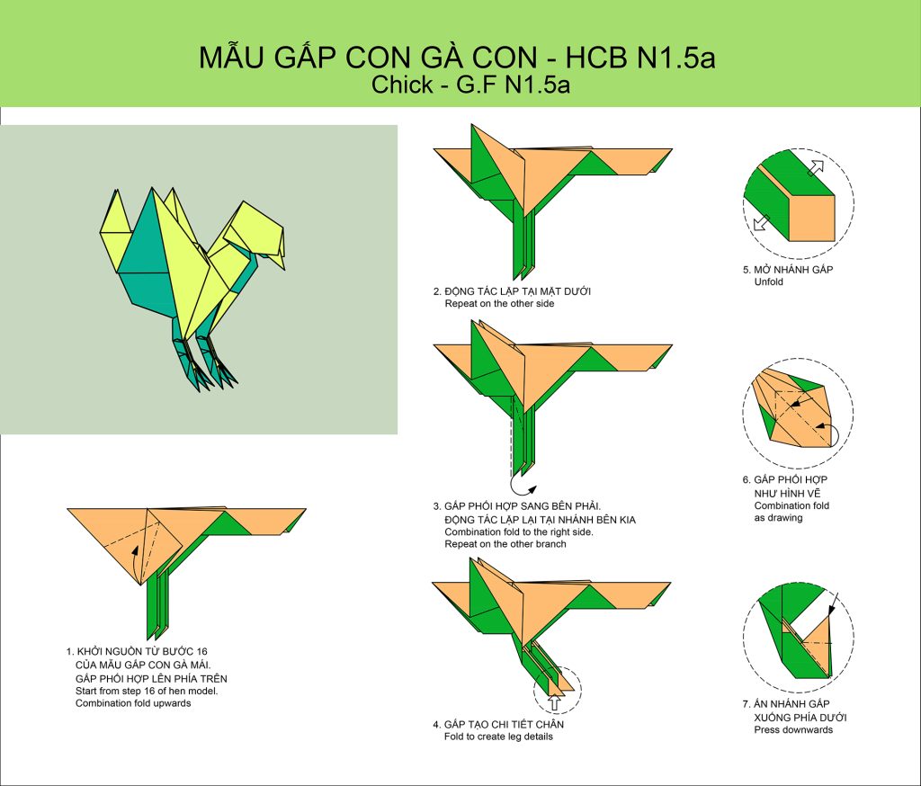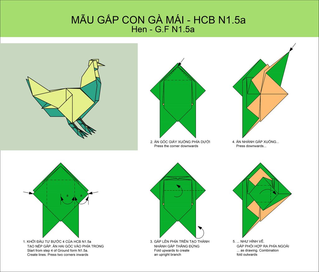 Xem video giới thiệu cách gấp Mẫu Con gà mái và gà con tại đây