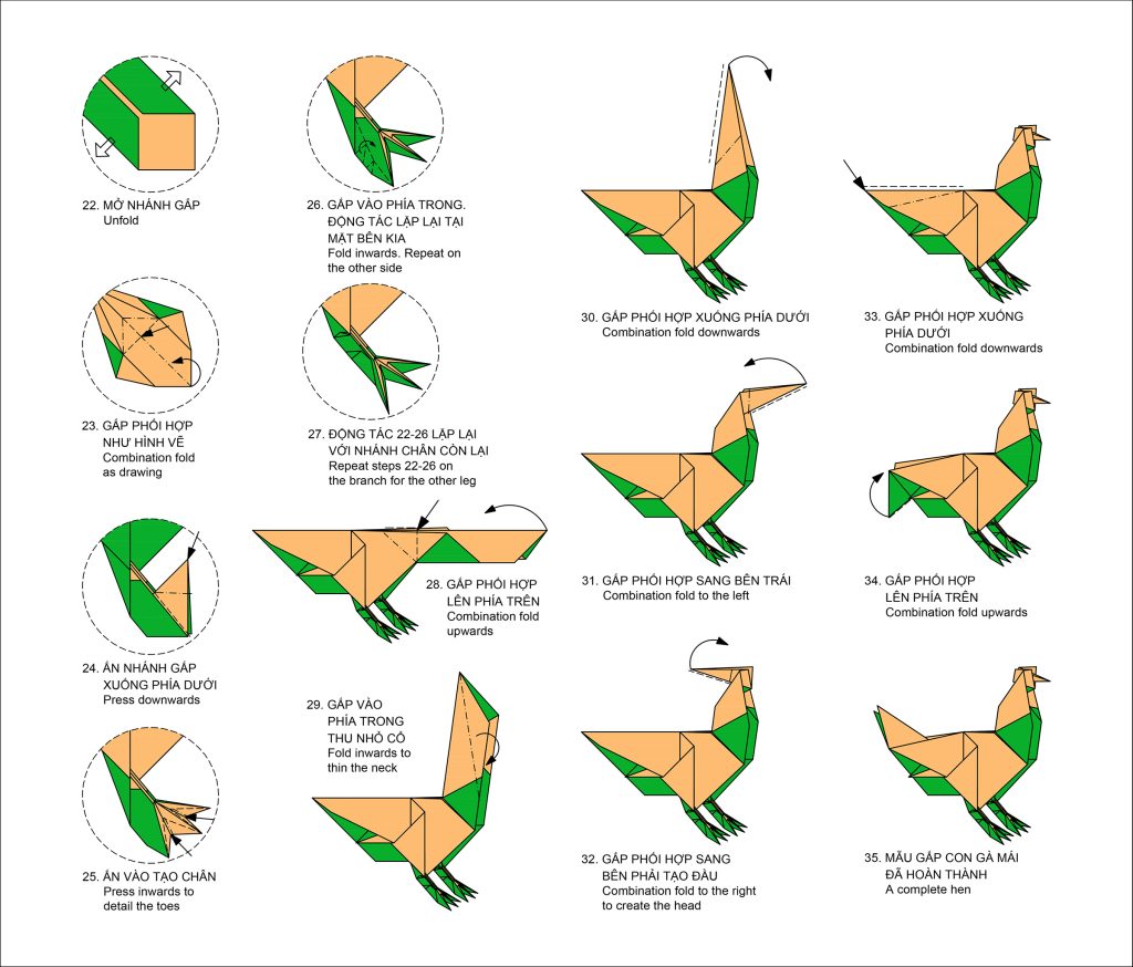 Mẫu gấp Con gà mái không quá khó với 35 bước (không kể Hình cơ bản).