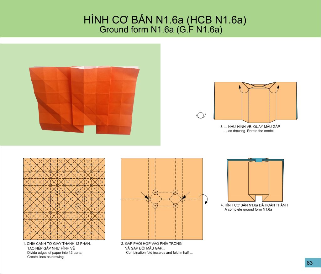 Mẫu gấp xe máy xuất phát từ Hình cơ bản N1.6a chia cạnh tờ giấy thành 12 phần với các nhánh gấp cho phép tạo ra hình dáng và những chi tiết của xe máy.