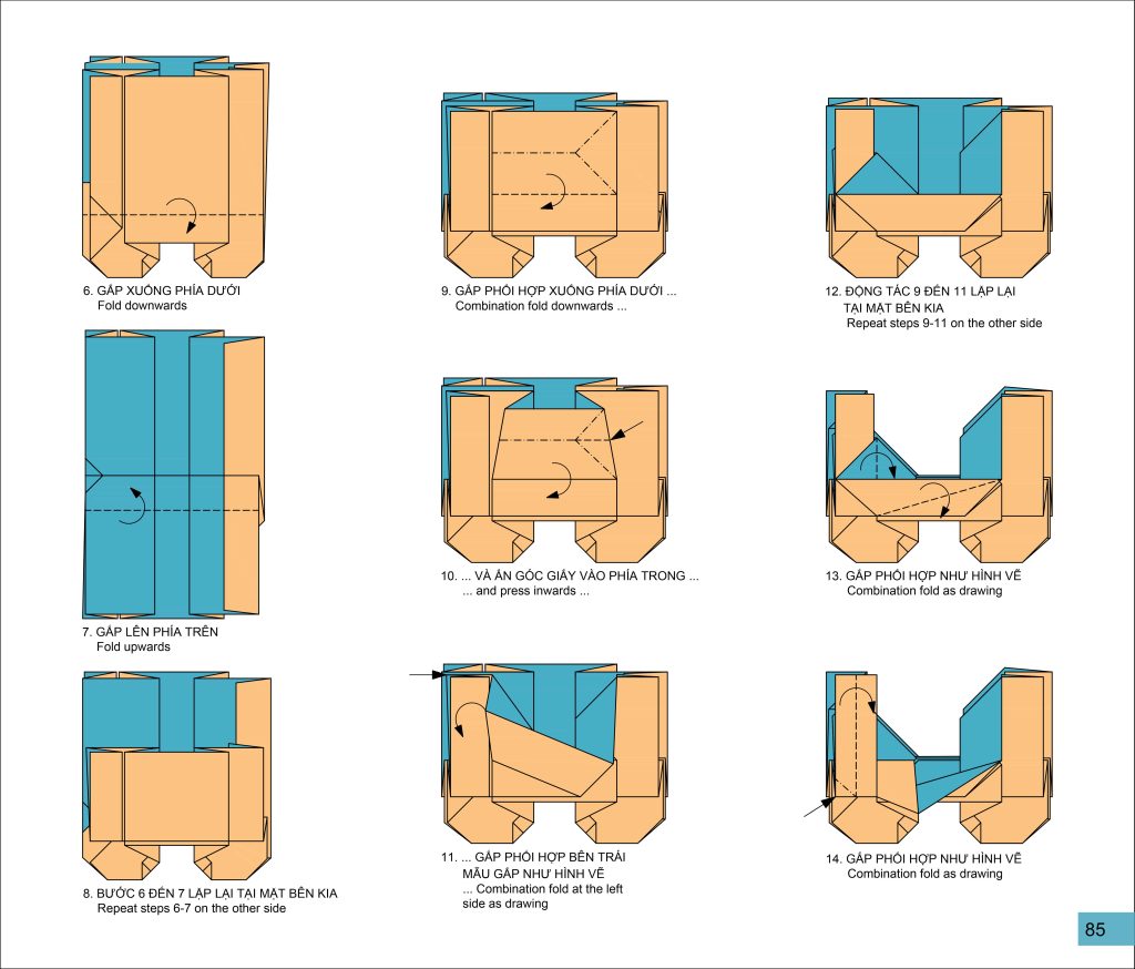 Mẫu gấp không quá phức tạp với 22 bước gấp, không kể hình cơ bản.