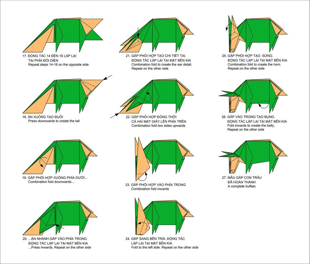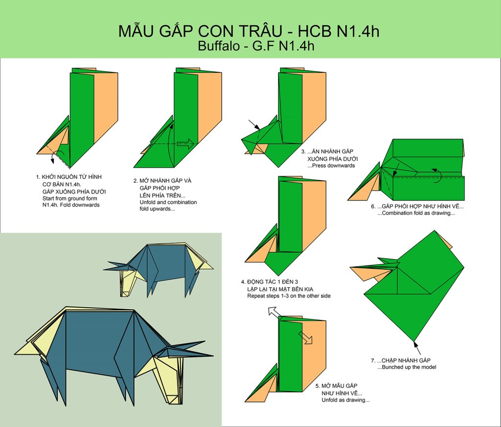 53 – Mẫu gấp Con trâu – Paper Folding Art: Buffalo