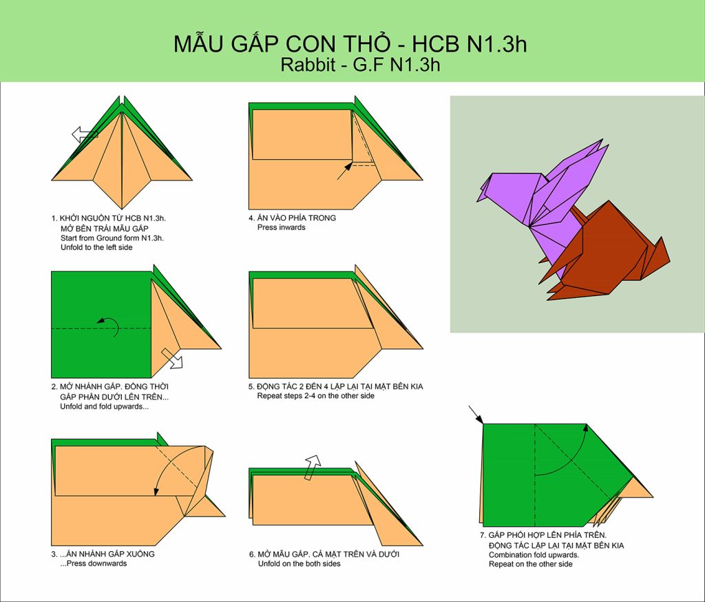58 – Mẫu gấp Con thỏ – Paper Folding Art: Rabbit