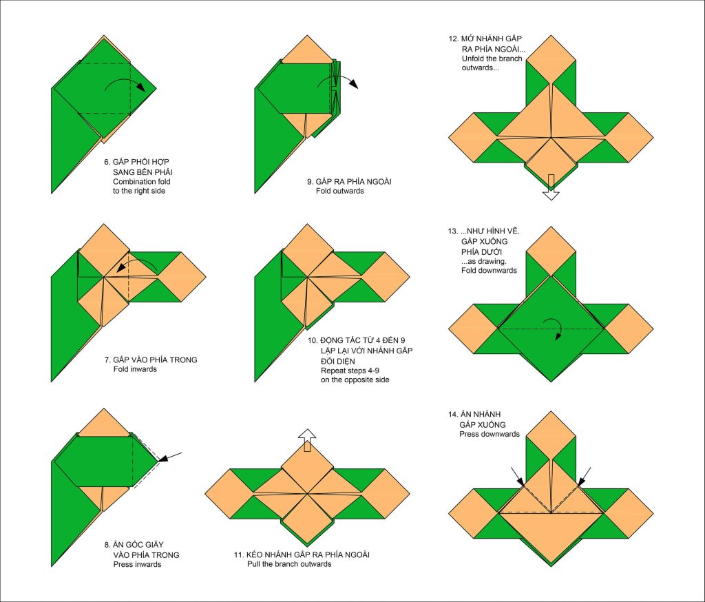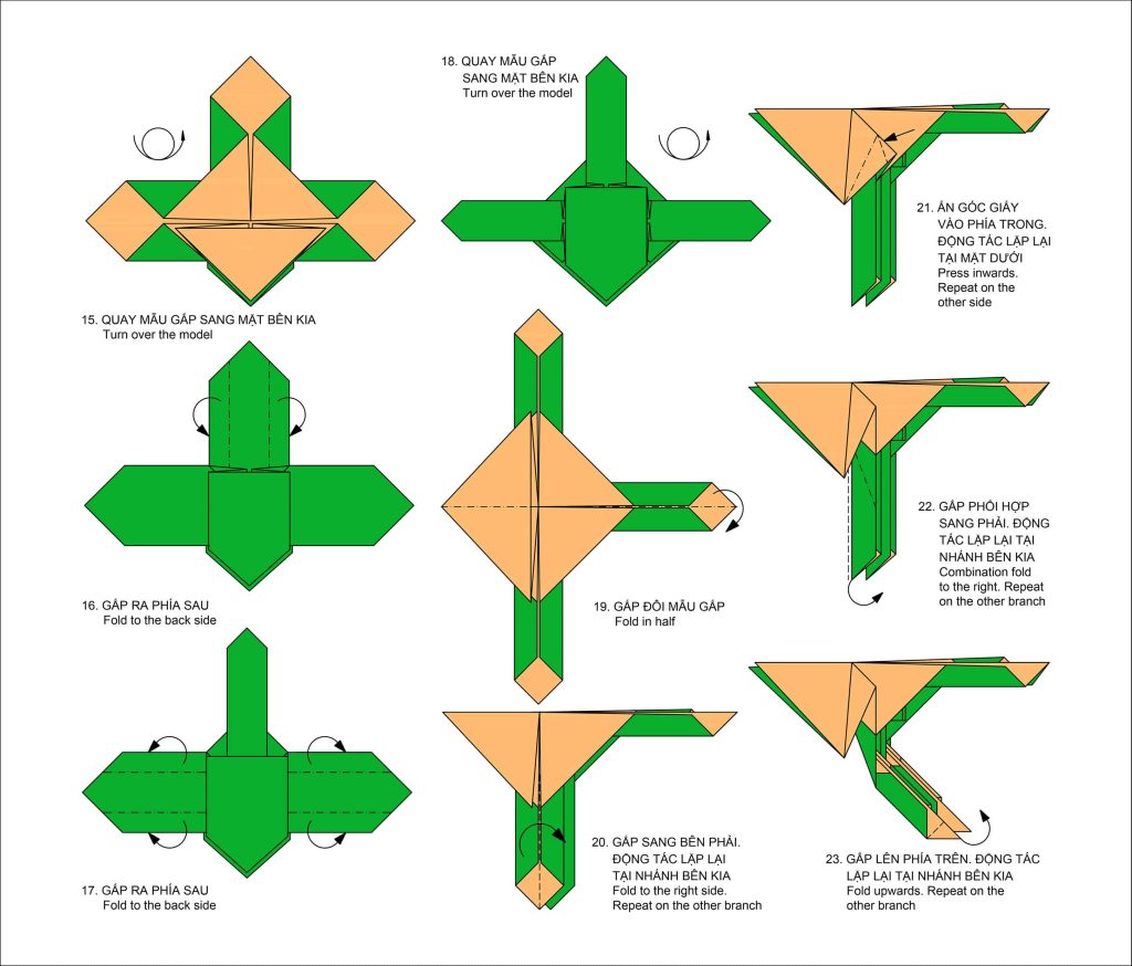 Mẫu gấp không quá phức tạp với 35 bước gấp, không kể hình cơ bản.