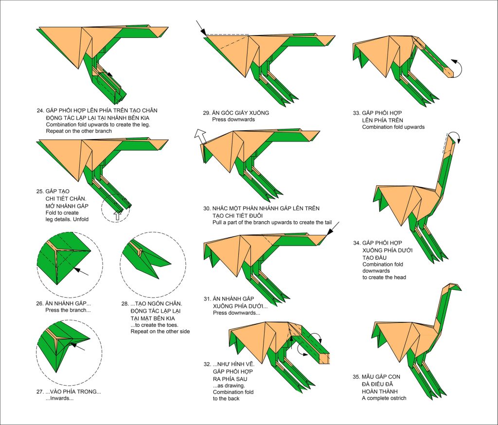 60 – Mẫu gấp Đà điểu – Paper Folding Art: Ostrich