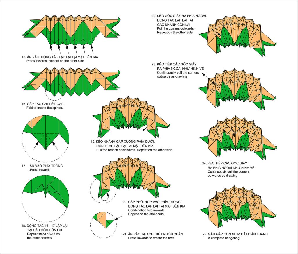 61 – Mẫu gấp Con nhím – Paper Folding Art: Hedgehog