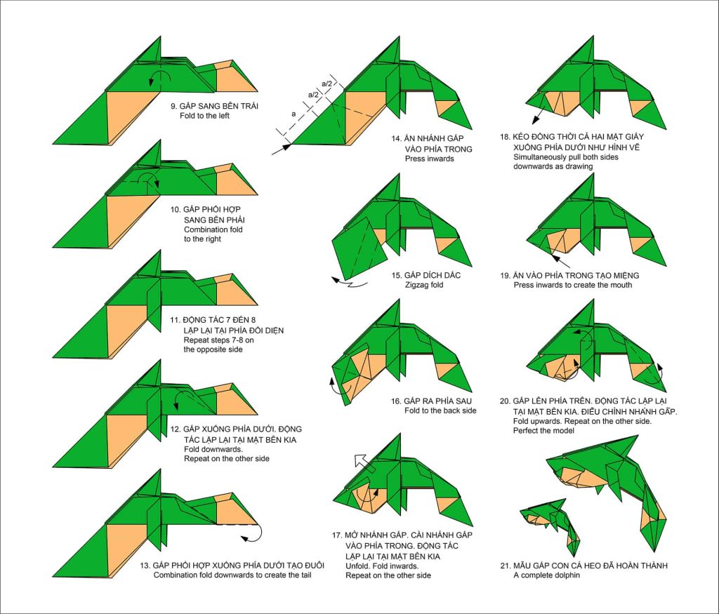 62 – Mẫu gấp Cá heo – Paper Folding Art: Dolphin