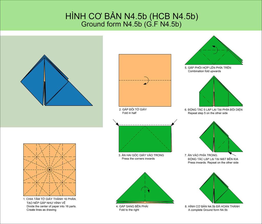 Mẫu gấp không quá phức tạp với 21 bước gấp (không kể Hình cơ bản).