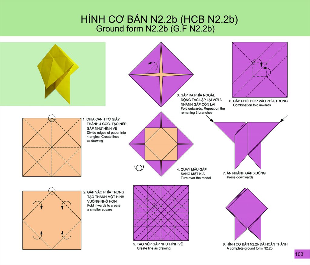 Mẫu gấp không quá phức tạp với 16 bước gấp (không kể Hình cơ bản).