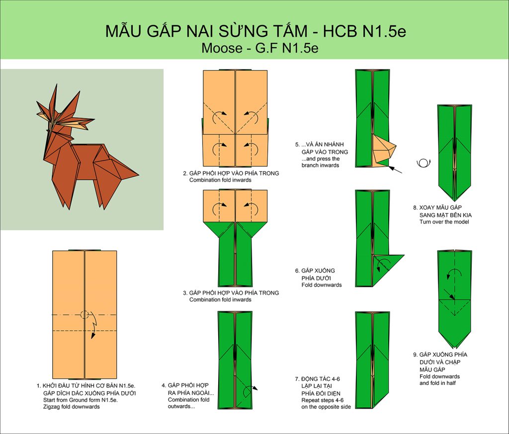 68 – MẪU GẤP NAI SỪNG TẤM – PAPER FOLDING ART: MOOSE