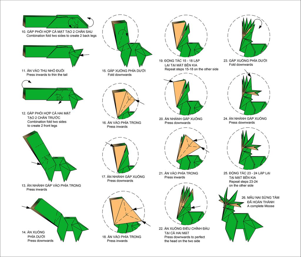 Xem video giới thiệu cách gấp Mẫu Nai sừng tấm tại đây
