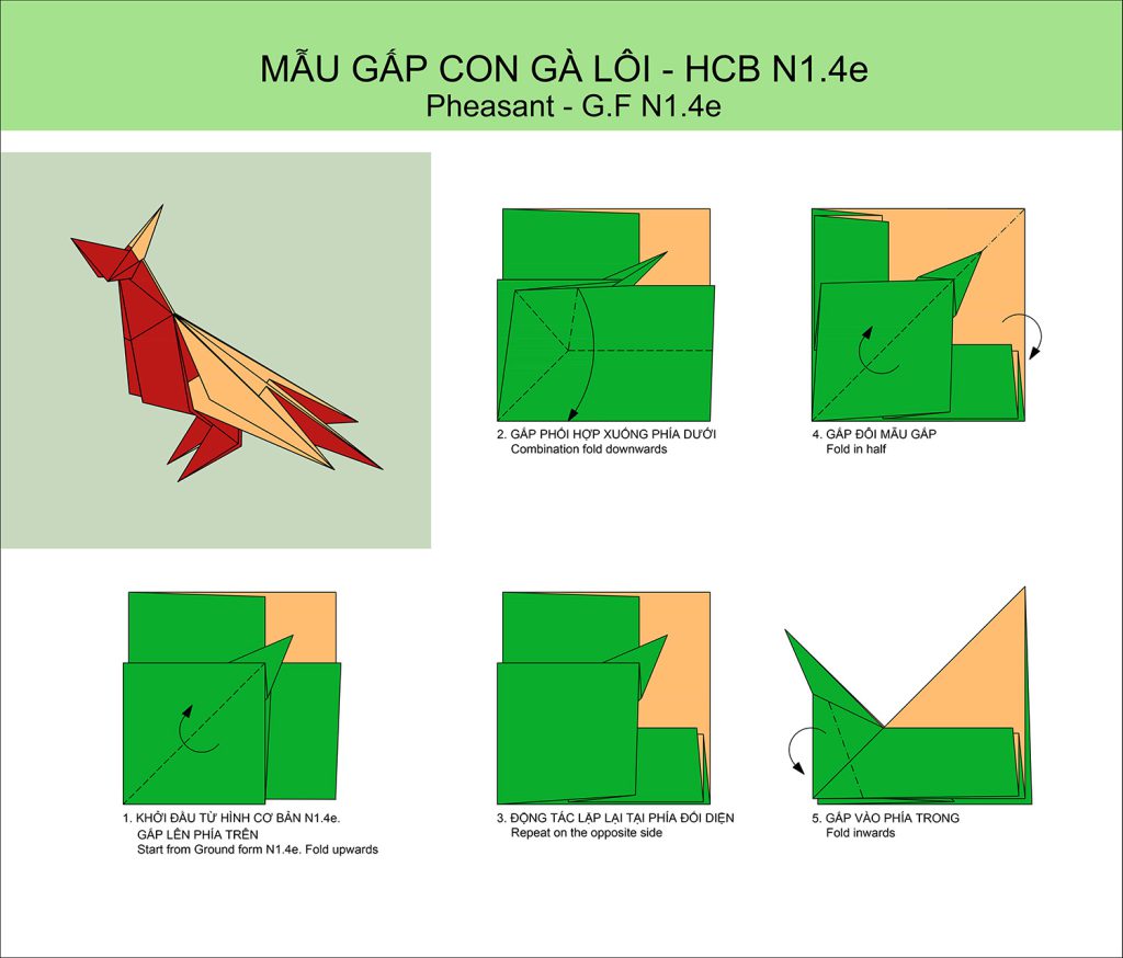 Xem video giới thiệu cách gấp Mẫu Con gà lôi tại đây