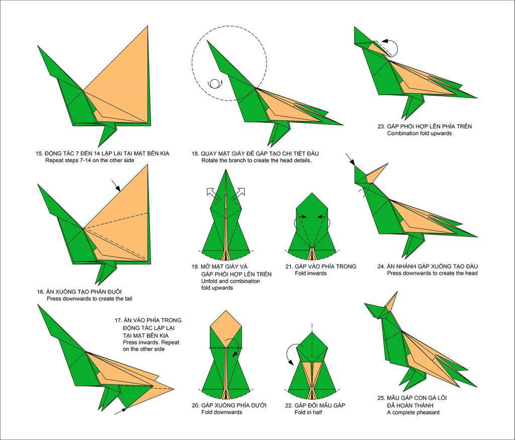 69 - Mẫu gấp Con gà lôi - Paper Folding Art: Pheasant