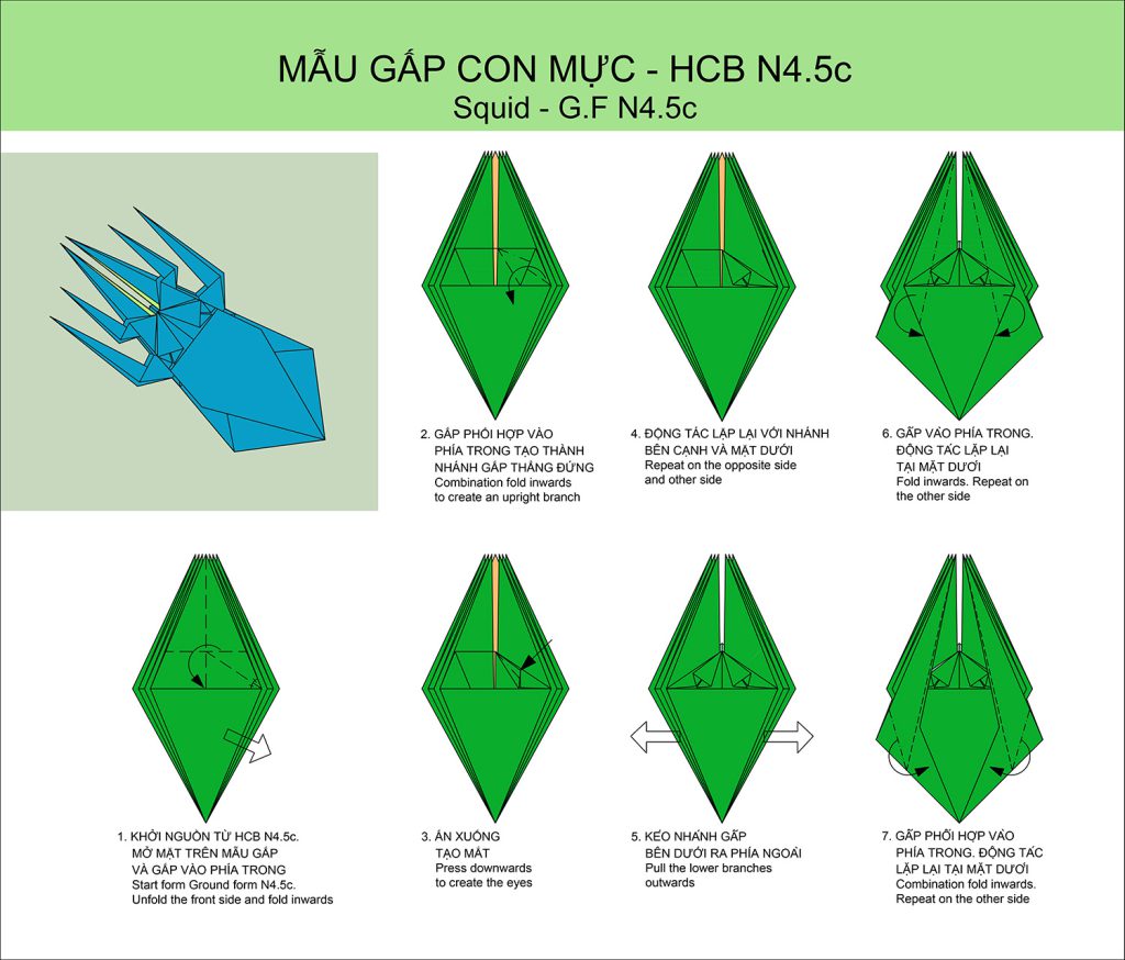 Xem video giới thiệu cách gấp Mẫu Con mực tại đây
