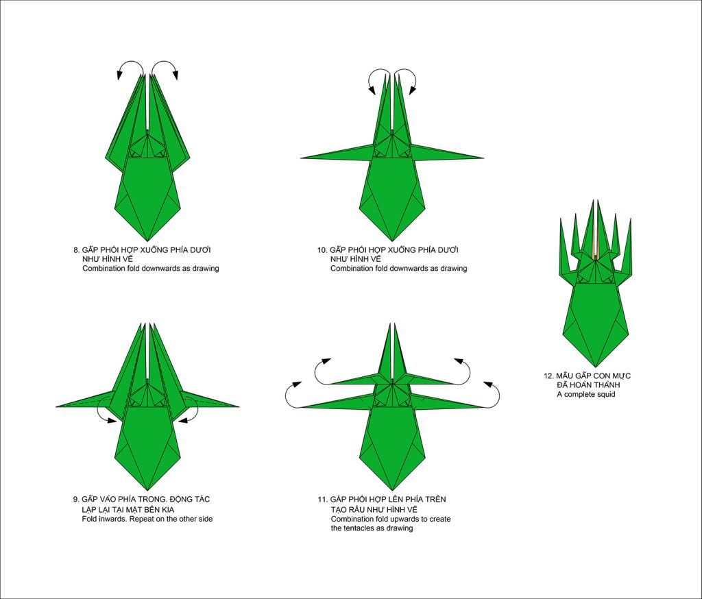 70 - Mẫu gấp Con mực - Paper Folding Art: Squid