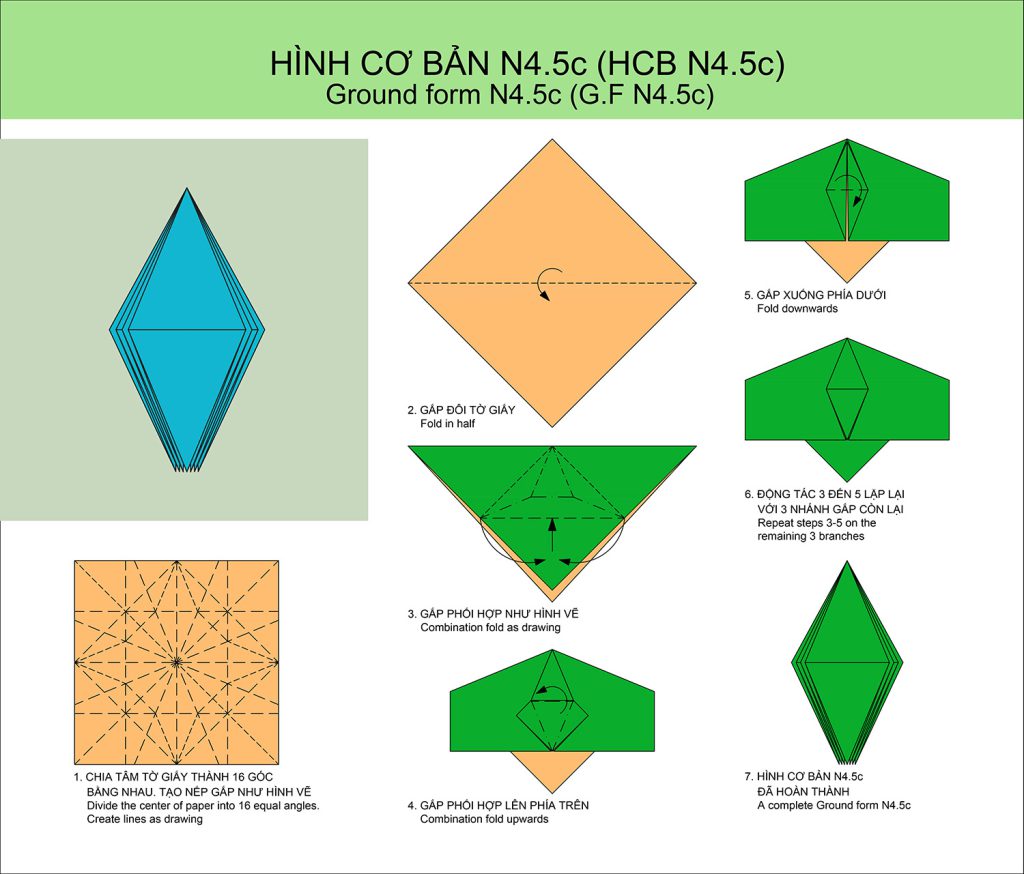 Mẫu gấp rất đơn giản chỉ với 12 bước (không kể Hình cơ bản). Ai cũng có thể gấp được.