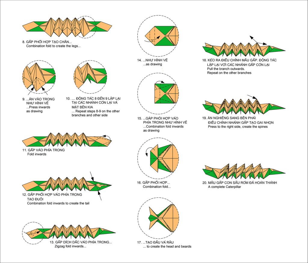 Mẫu gấp Con sâu róm đơn giản với 20 bước (không kể Hình cơ bản). Ai cũng có thể gấp được.