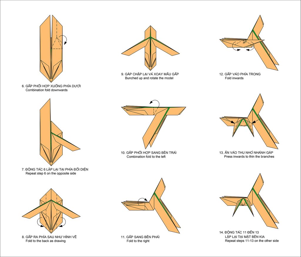 Mẫu gấp chỉ với 23 bước (không kể Hình cơ bản), không quá phức tạp. Ai cũng có thể gấp được.