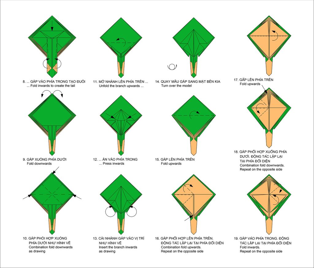 Mẫu gấp không quá phức tạp với 30 bước gấp (không kể Hình cơ bản).
