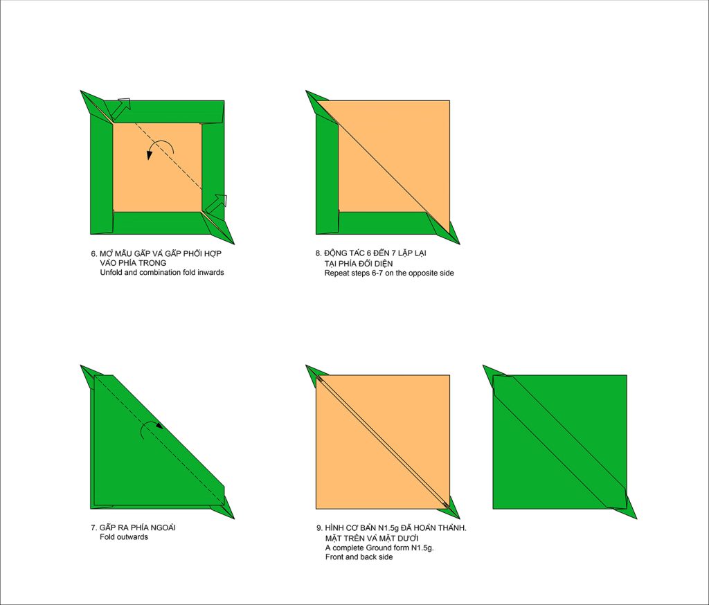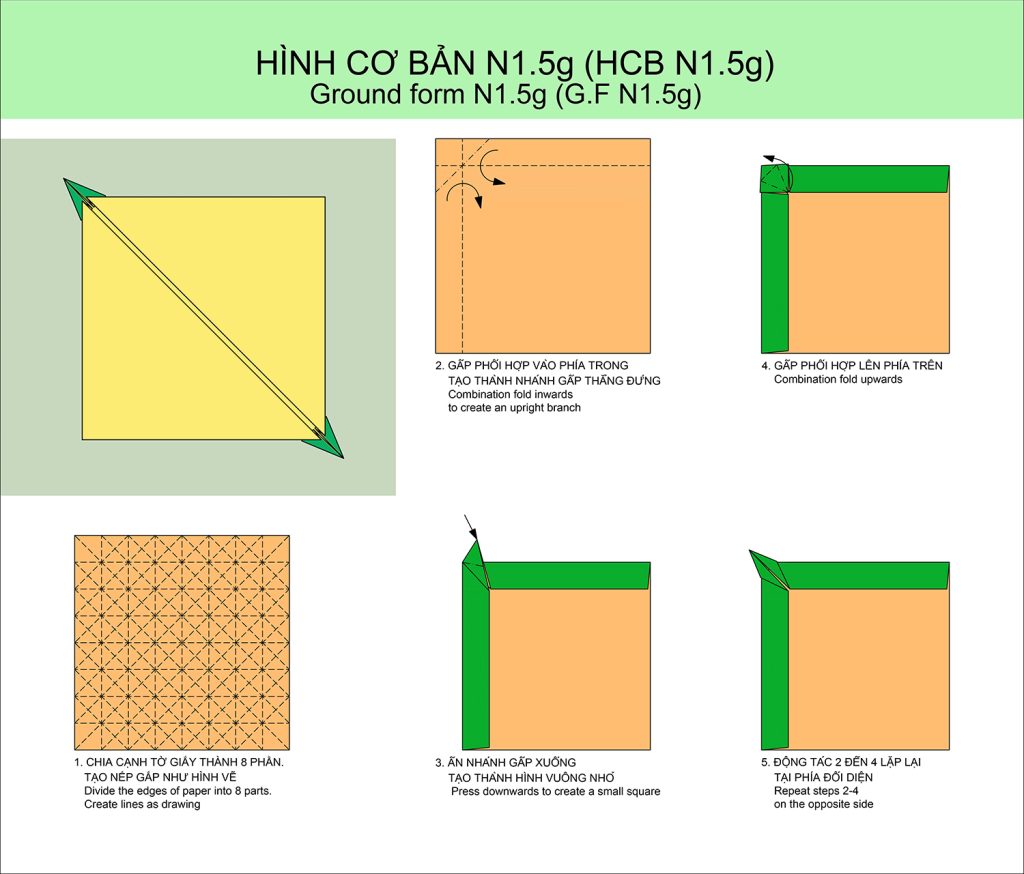 Mẫu gấp Con sâu bướm xuất phát từ Hình cơ bản N1.5g, chia cạnh tờ giấy thành 8 phần.