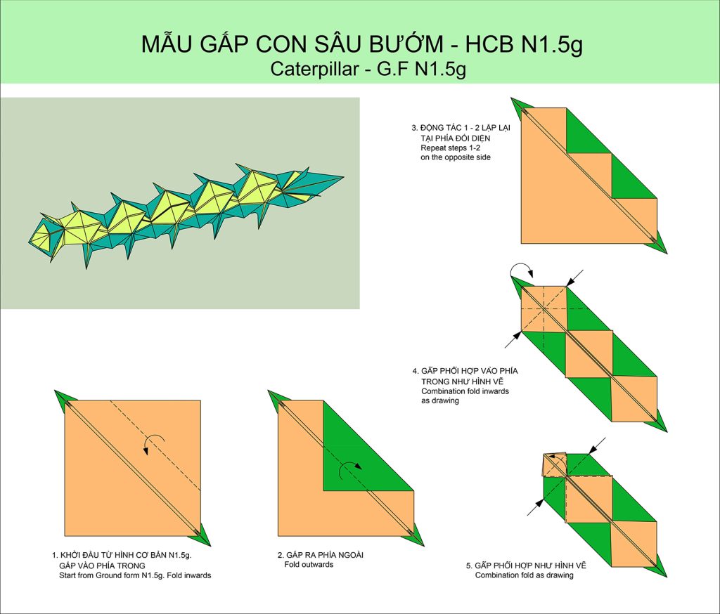 88 – Mẫu gấp Con sâu bướm – Paper Folding Art: Caterpillar