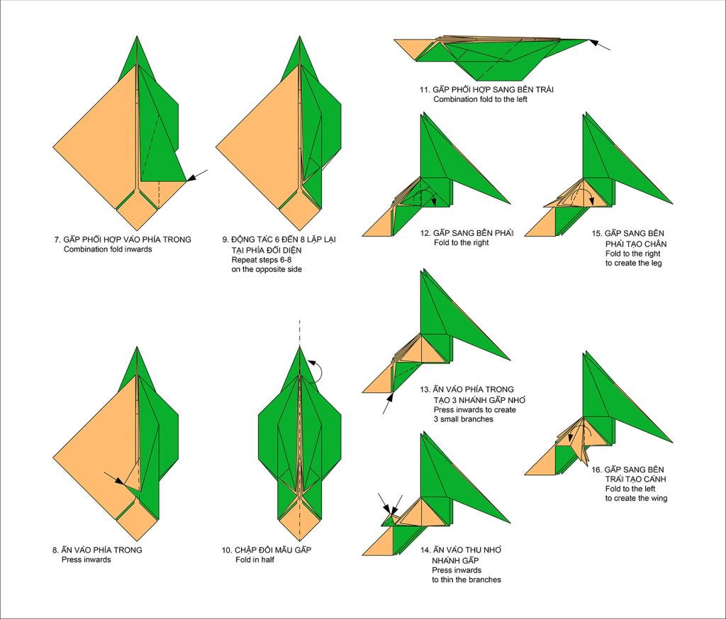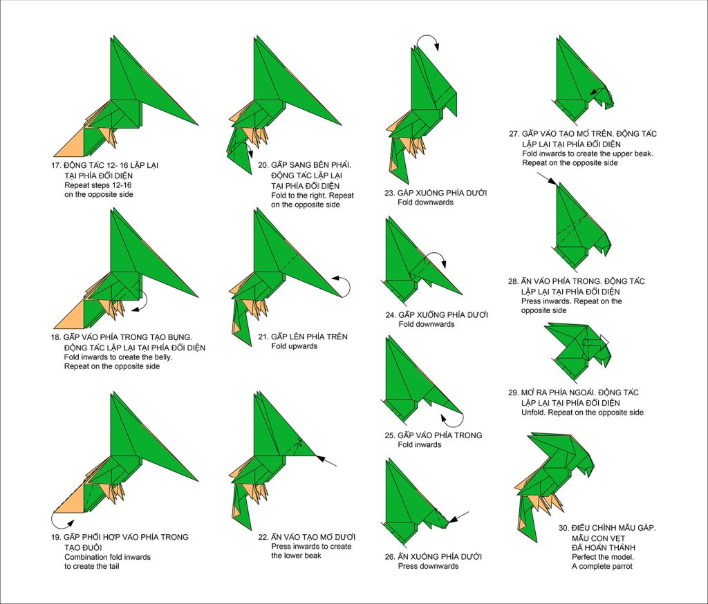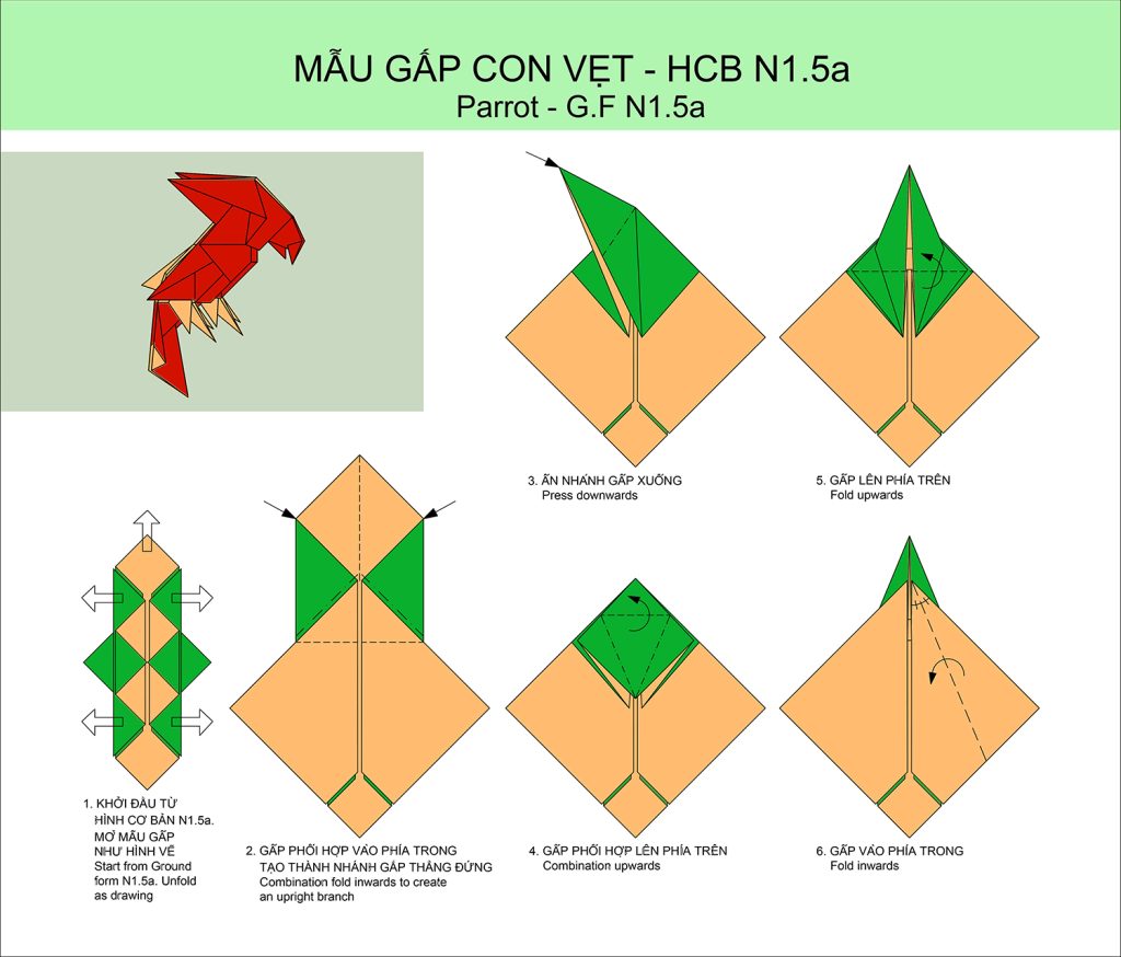 90 – Mẫu gấp Con vẹt – Paper Folding Art: Parrot