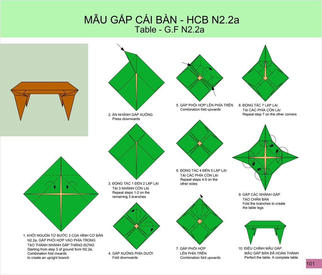 Mẫu gấp Bàn đơn giản với 10 bước gấp (không kể Hình cơ bản).