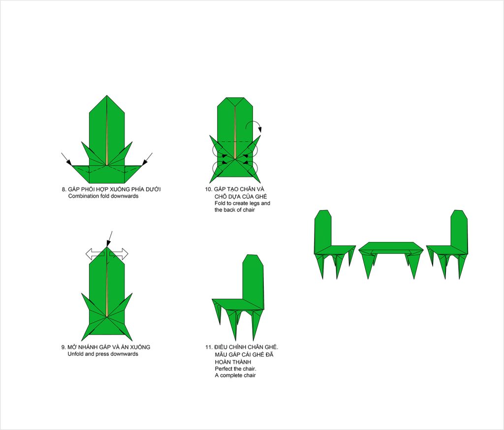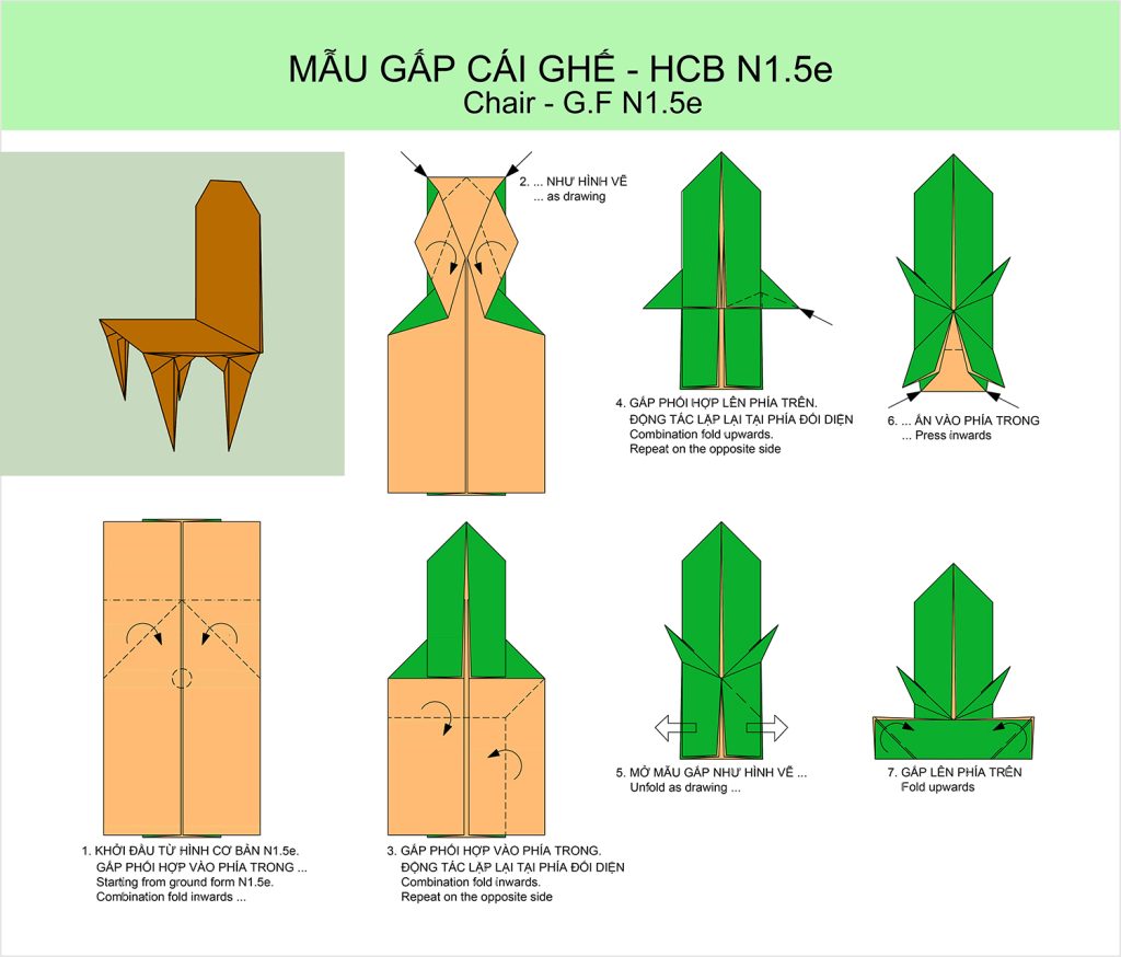 Xem video giới thiệu cách gấp Mẫu Bàn, Ghế tại đây