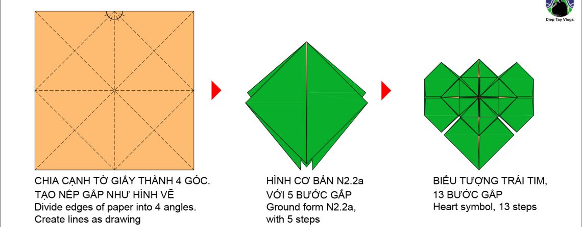 45 - Mẫu gấp Biểu tượng trái tim - Paper Folding Art: Heart symbol