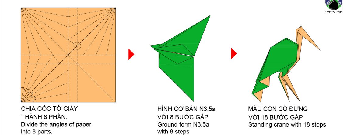 44 - Mẫu gấp Con cò đứng - Paper Folding Art: Standing crane