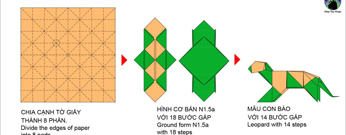 Mẫu gấp Con báo xuất phát từ Hình cơ bản N1.5a, chia cạnh...