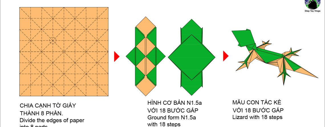 39 - Mẫu gấp Con tắc kè - Paper Folding Art: Lizard