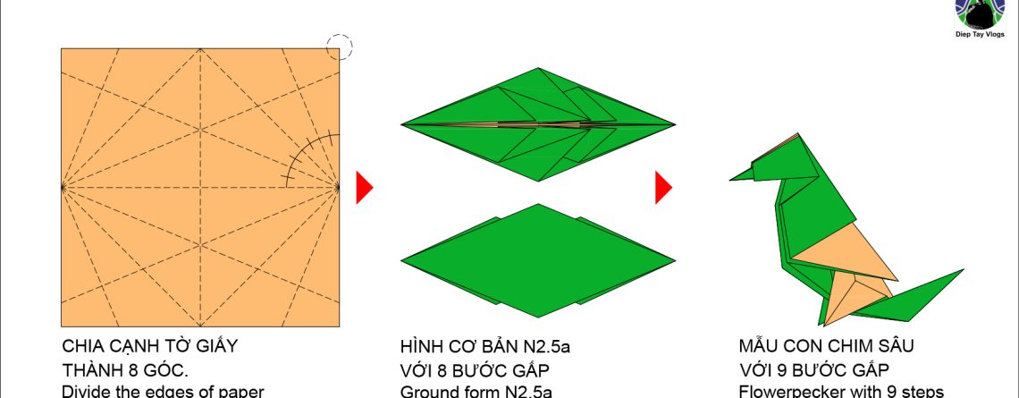 38 - Mẫu gấp Chim sâu - Paper Folding Art: Flowerpecker
