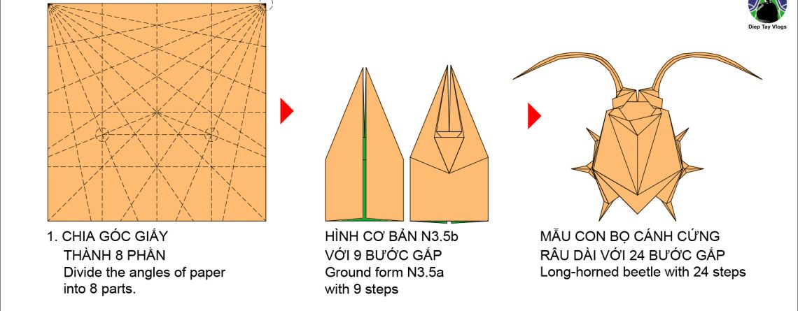 19 - Mẫu gấp Con bọ râu dài - Paper Folding Art: Long-horned Beetle