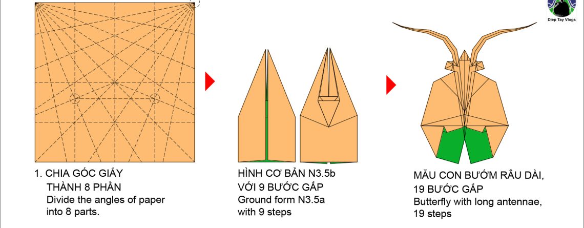 20 - Mẫu gấp Con bướm râu dài - Paper Folding Art: Butterfly with long antennae
